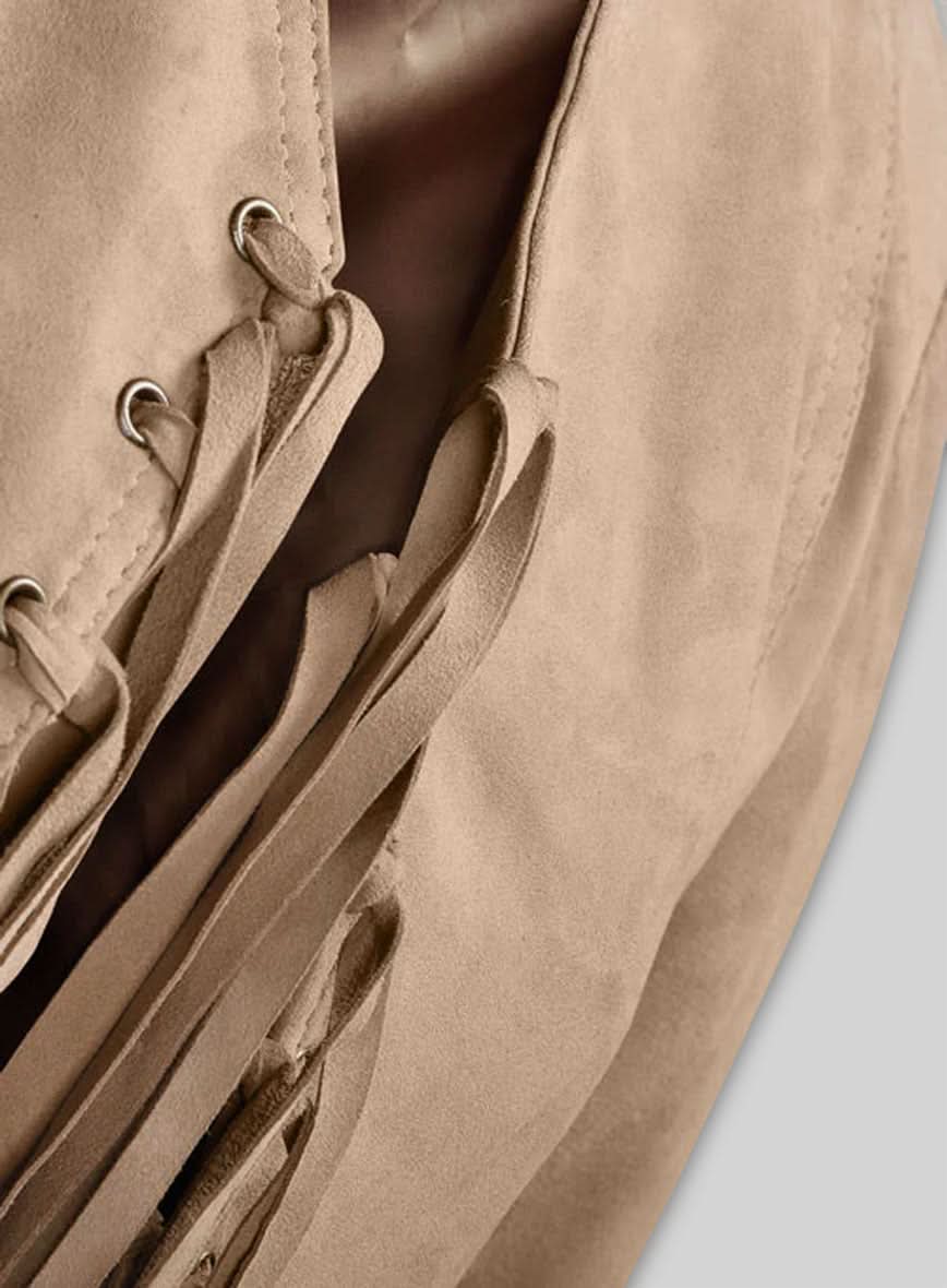 Step into date-night elegance with this Francia Rasia inspired suede leather jacket, modeled after Valentina in How I Met Your Father. Featuring stylish fringes, it balances boldness and sophistication. Crafted from 100% pure Napa leather, this replica is available in ready sizes or custom measurements for a comfortable, confident fit.
