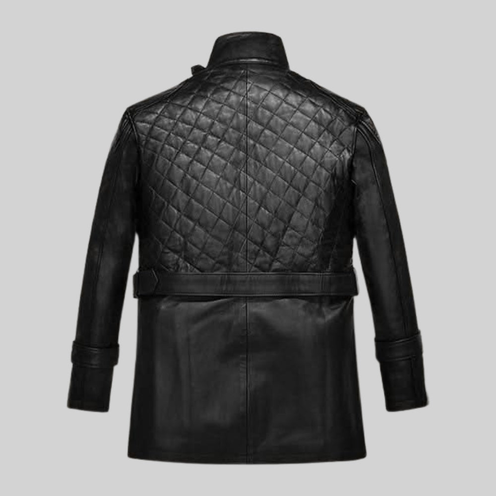 • Design: Long leather trench coat silhouette with edgy, versatile styling.