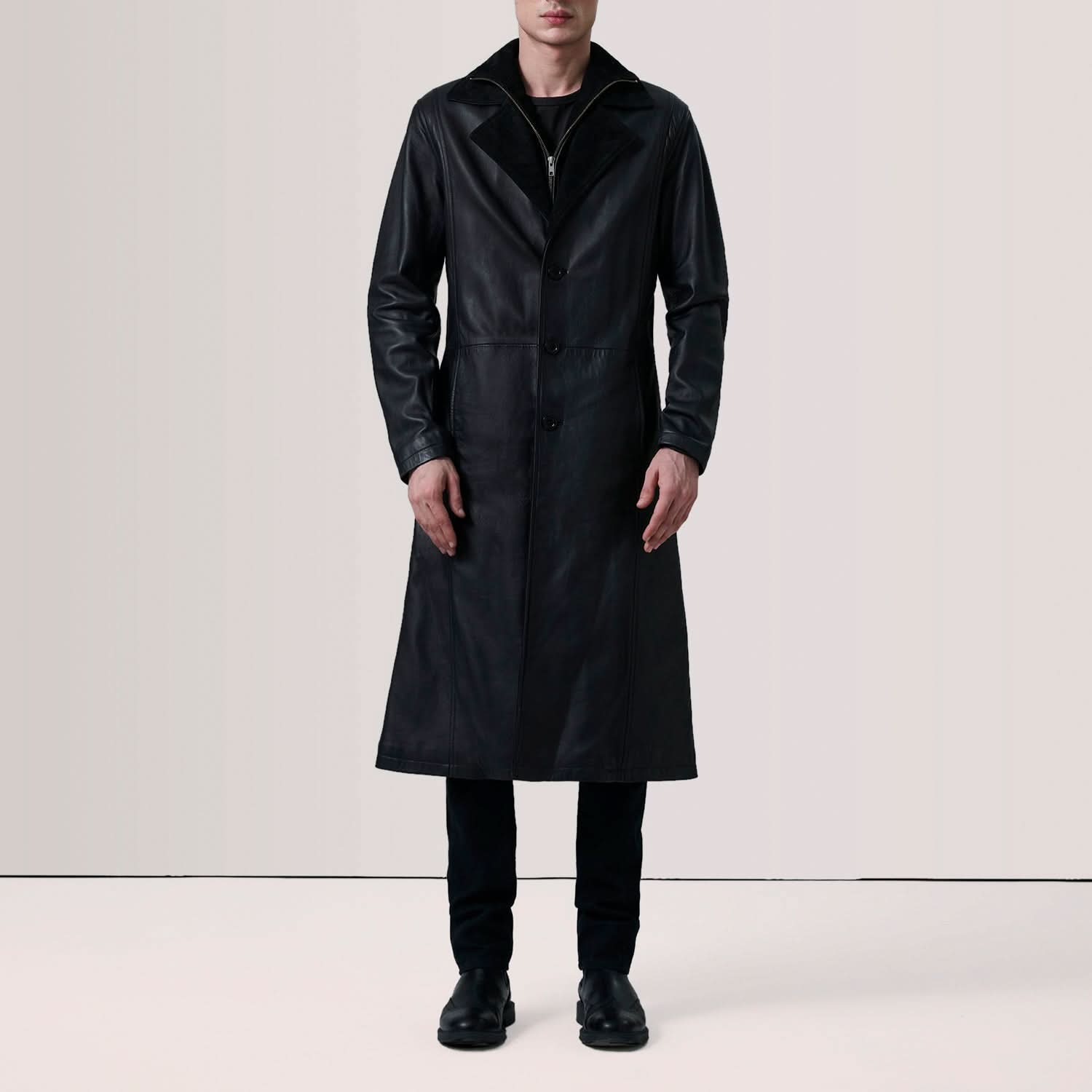 Charlton Black Leather Single Breasted Coat