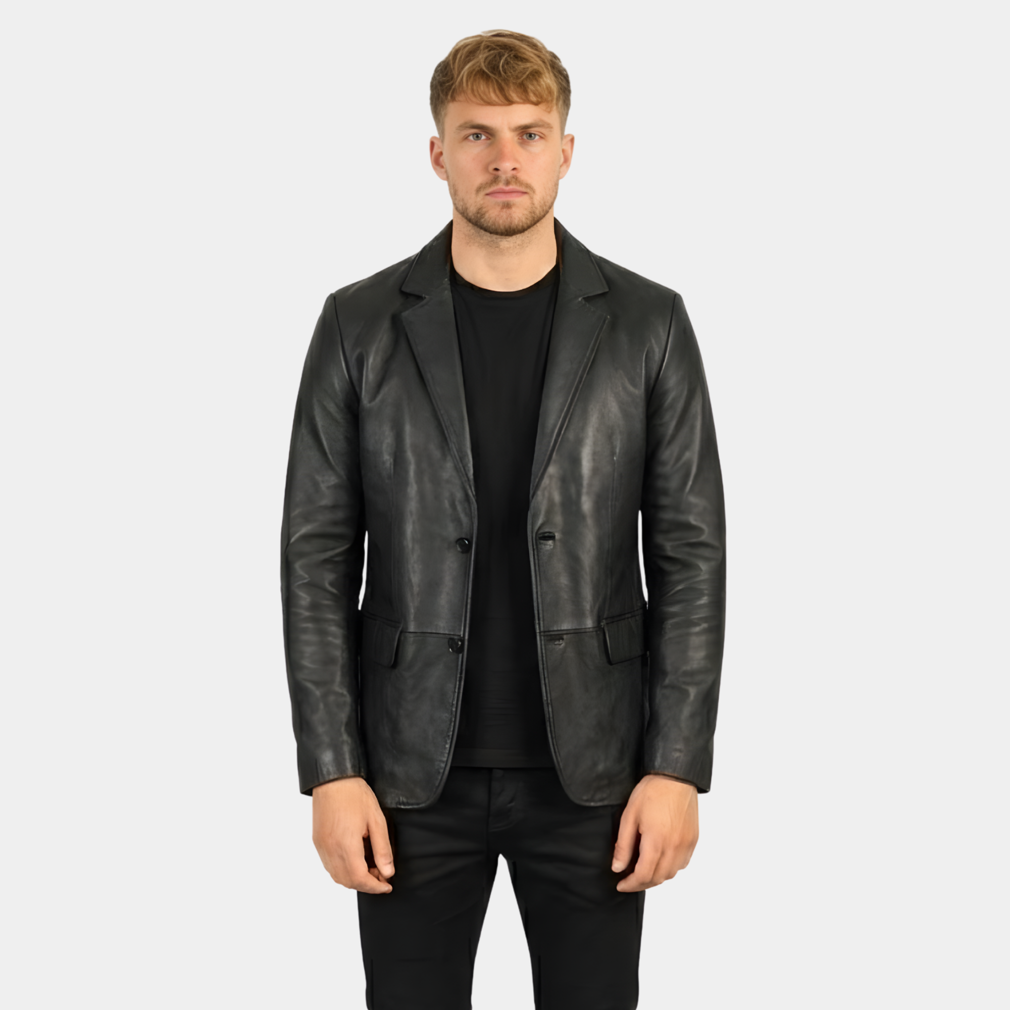 Men's Lapel Color Black Leather Blazer