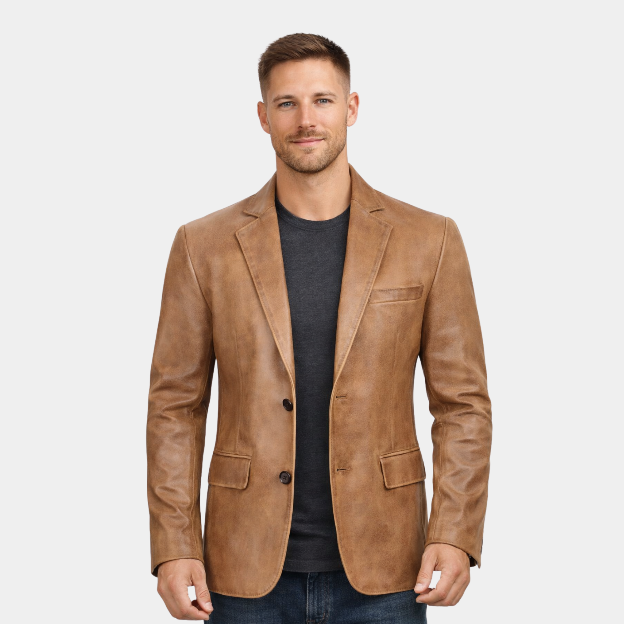 Men's Two Button Classic Camel Brown Leather Blazer