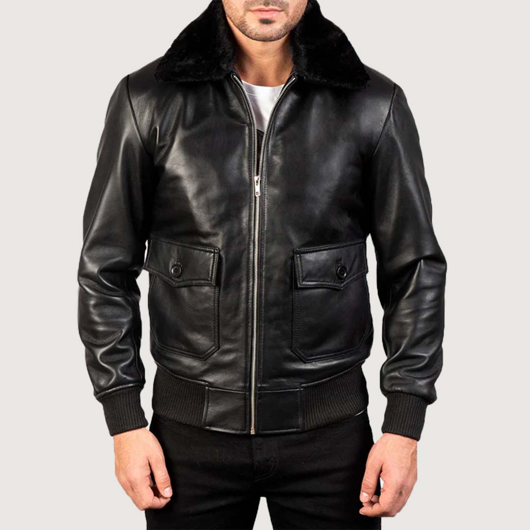 Airin G-1 Black Leather Bomber Jacket