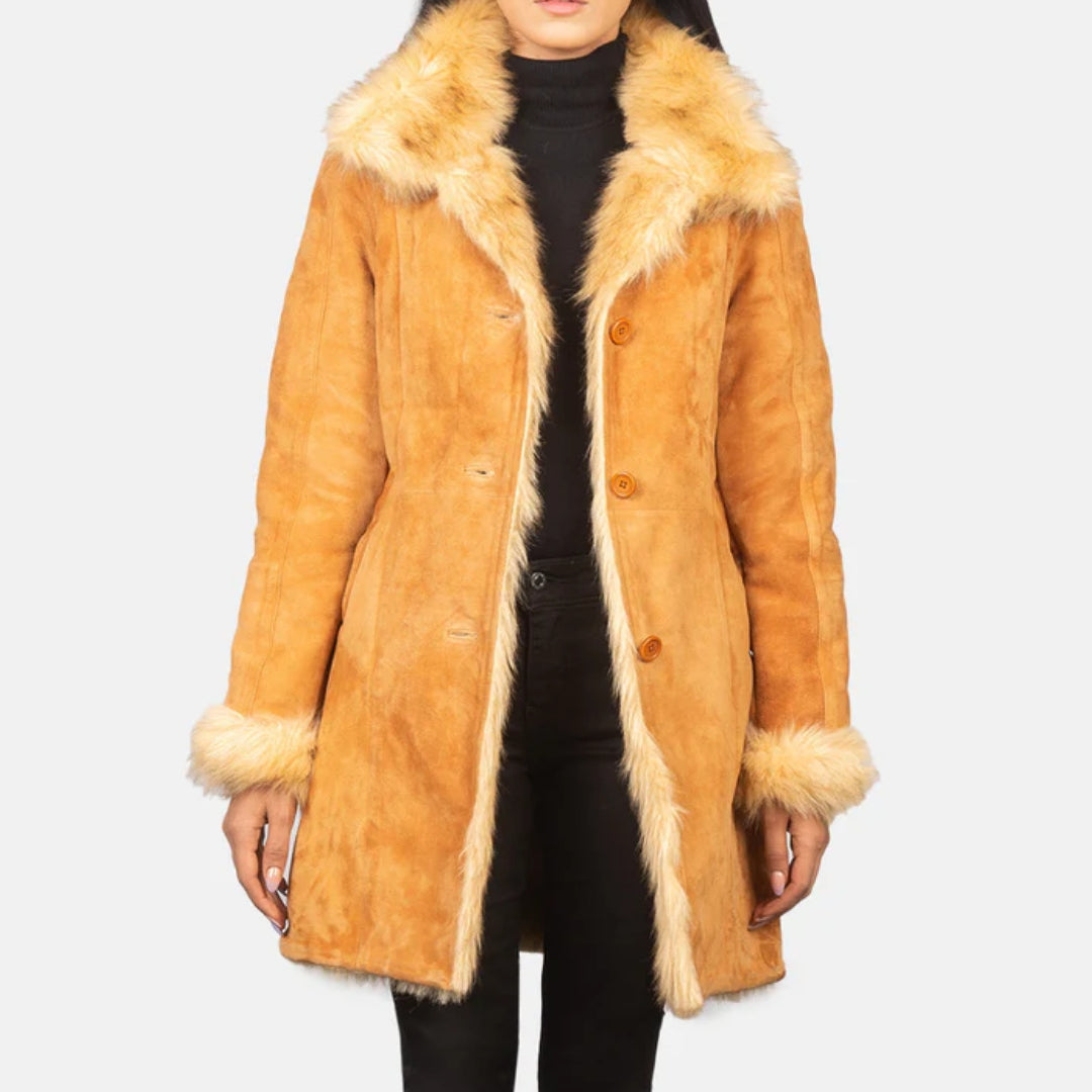 The Erica Shearling Beige Leather Coat brings understated sophistication to your winter wardrobe. Crafted from premium beige leather and fully lined with cozy shearling, it offers a refined look while ensuring warmth and everyday functionality.