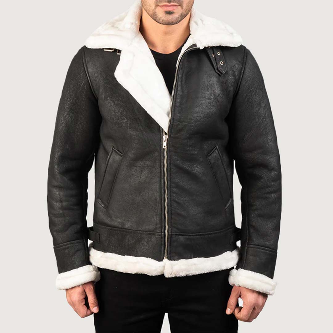 Step into bold, vintage-inspired style with our distressed black sheepskin aviator jacket for men. Crafted from real leather with a snuffed finish, it’s fully lined with faux fur for warmth. The buckled collar, roll-back cuffs, and waist adjustment straps complete its classic aviator look with rugged functionality.