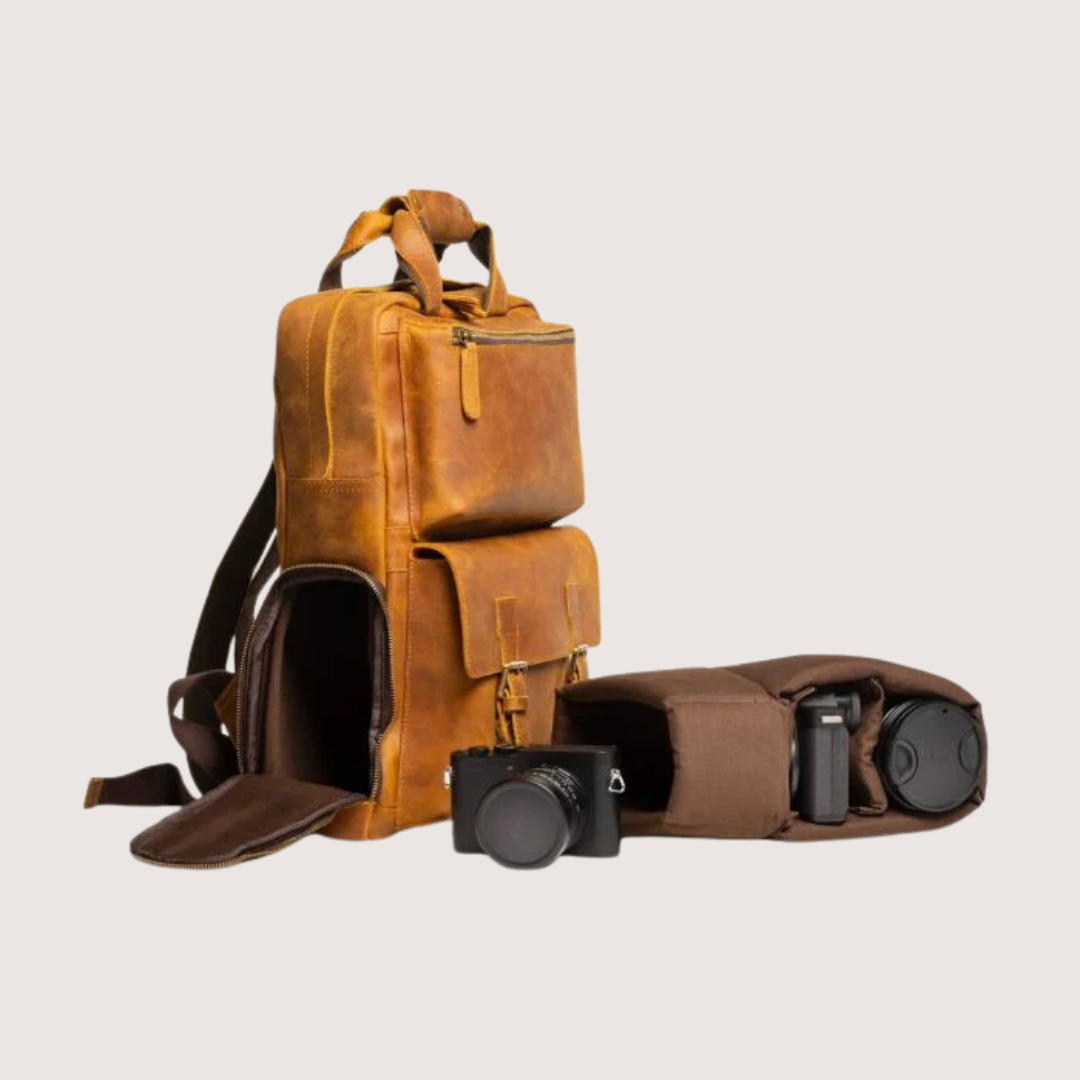 The Mann Bag Pack is a spacious and versatile backpack crafted from high-quality crazy horse leather. Designed with functionality in mind, it accommodates a wide range of needs from photography gear to daily essentials. The leather is durable and develops a unique patina over time, characteristic of full-grain materials. This backpack is equipped with multiple compartments and thoughtful features for organization and ease of use, making it ideal for both travel and everyday use.