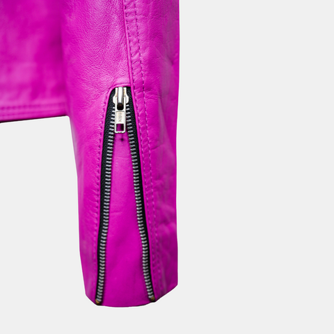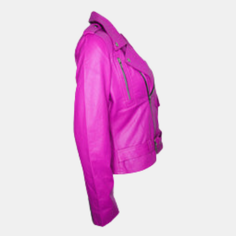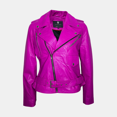 The Classy Belted Hot Pink Leather Jacket is a vibrant statement piece that effortlessly combines sophistication with a bold pop of color. Crafted from high-quality leather, this jacket features a stylish belted design that accentuates your waist while offering a chic silhouette. Perfect for adding a touch of glamor to any outfit, it's an ideal choice for fashion-forward individuals looking to make an impression.